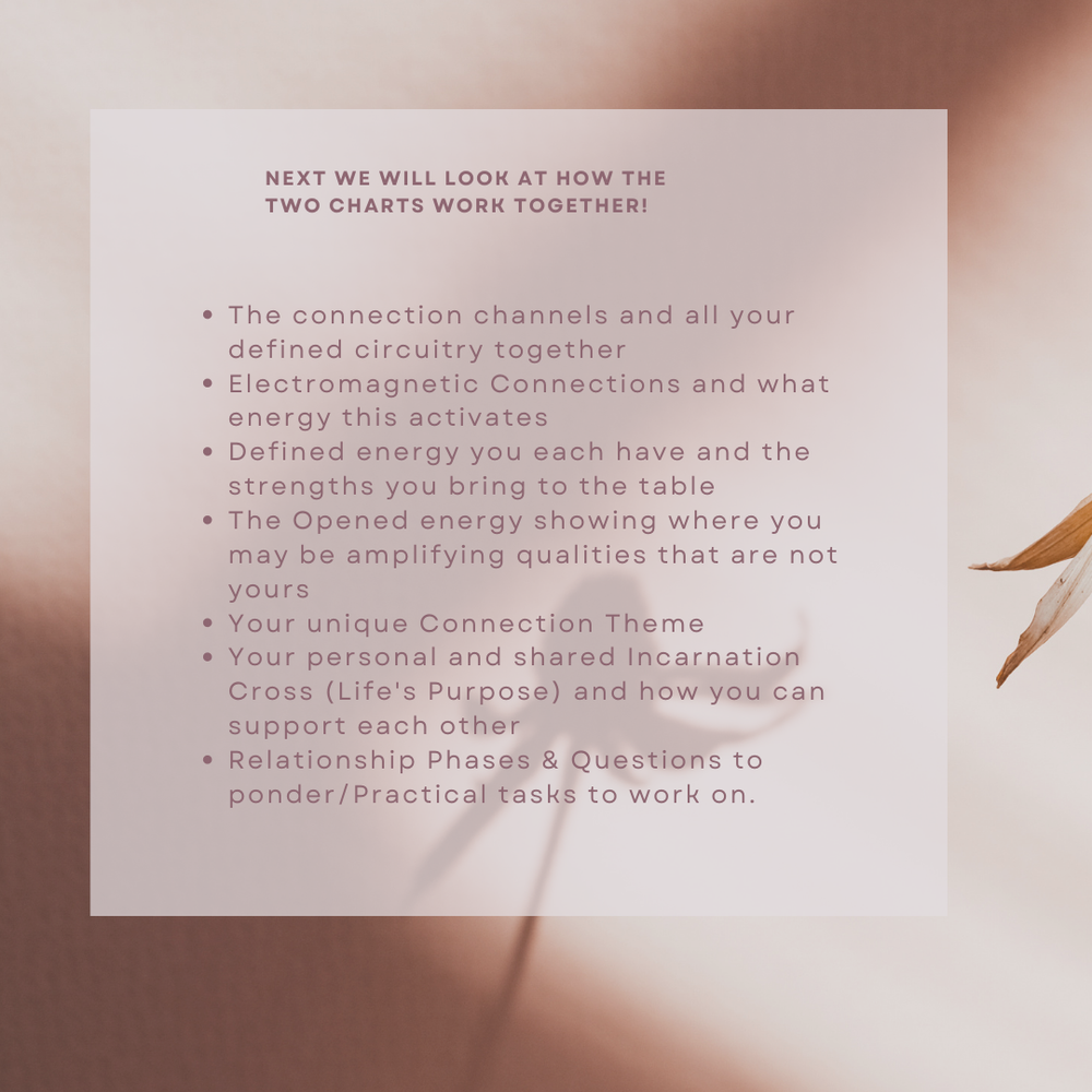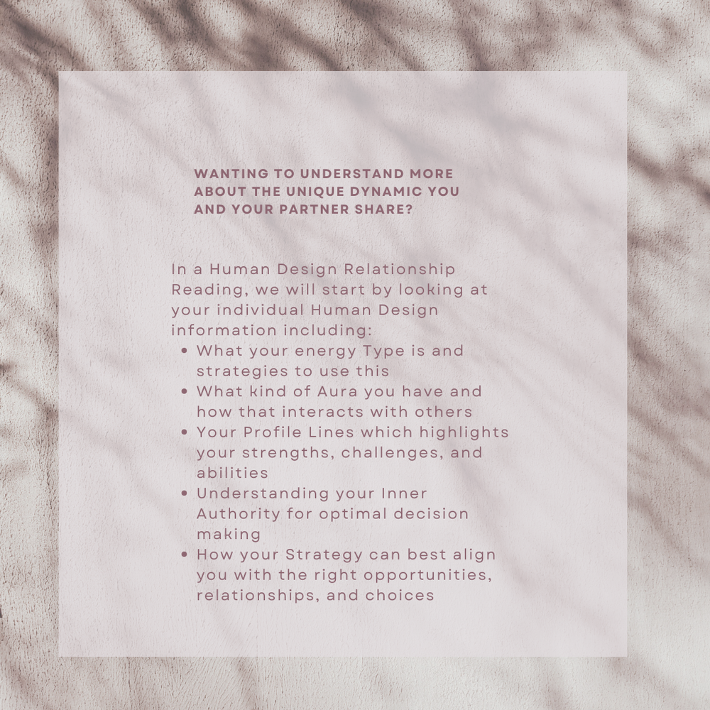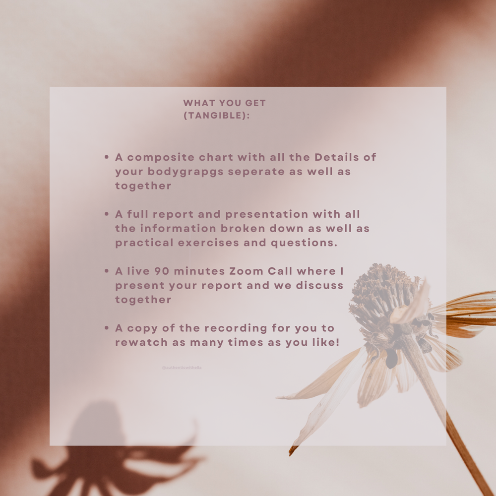A Human design composite chart gives you the knowledge to improve communication and create a relationship that upholds your values. You are designed to be loved and accepted for who you are, as well as you are designed to love and accept others for who they are.HD gives you this map. It's not a label that says this fits with that, it's not a tool to decide who to be in a relationship with. There is know PERFECT dynamic, but knowledge is power!